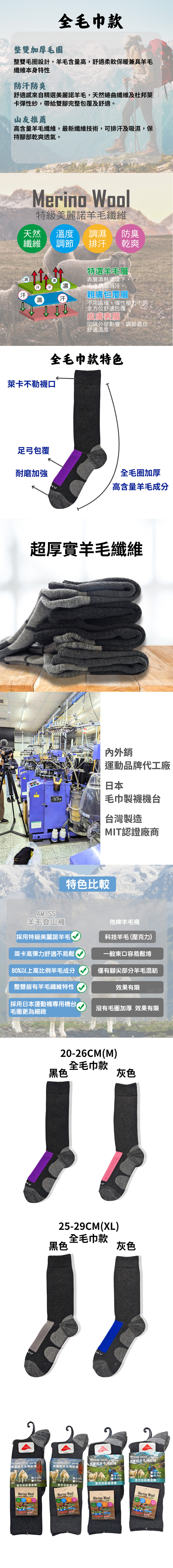 MA02【全毛巾款】美麗諾羊毛襪/滑雪襪/登山(6雙一組)